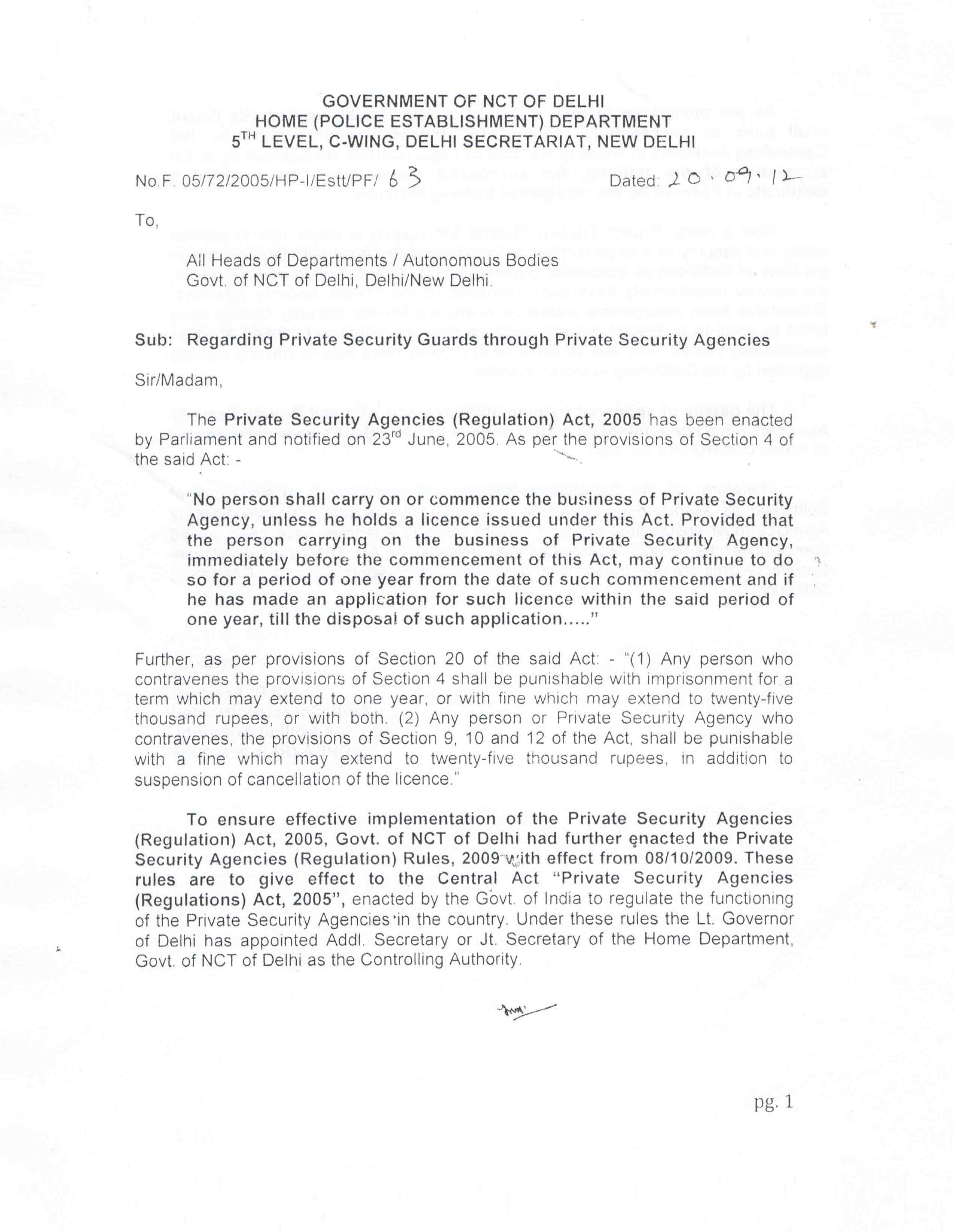 Circular issued by controlling authority (Government of Delhi)